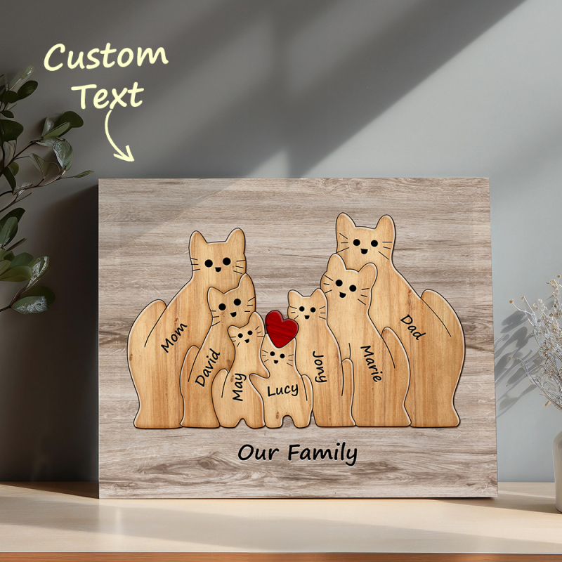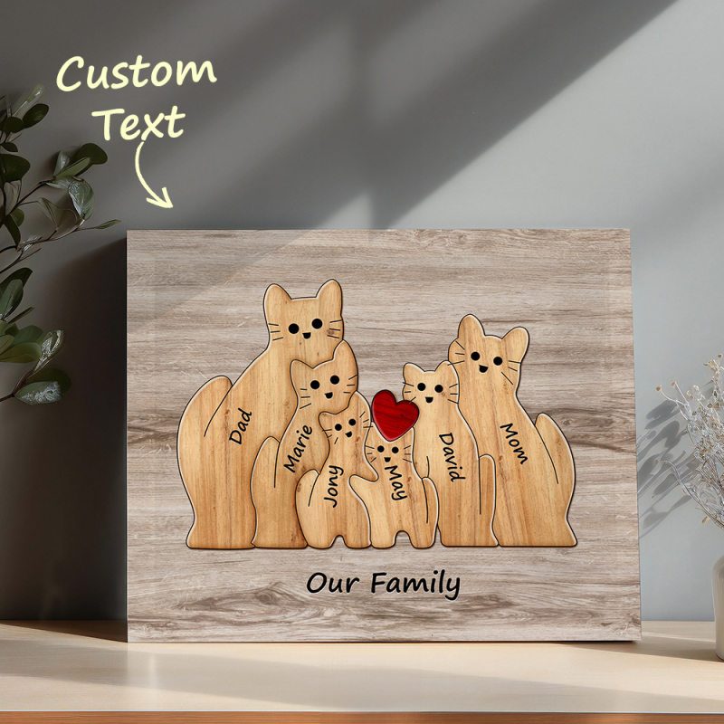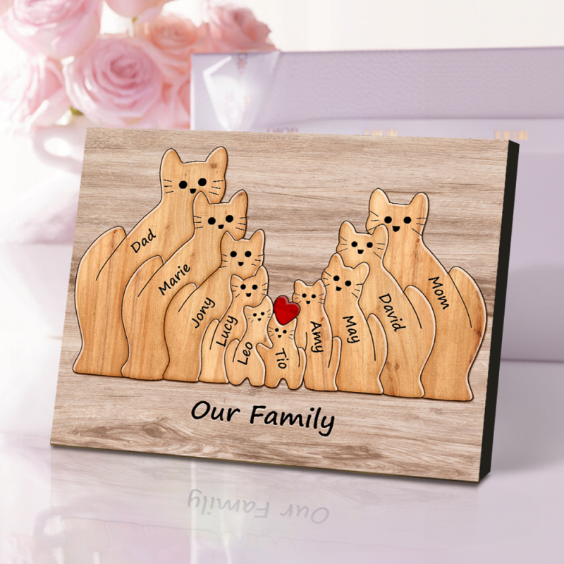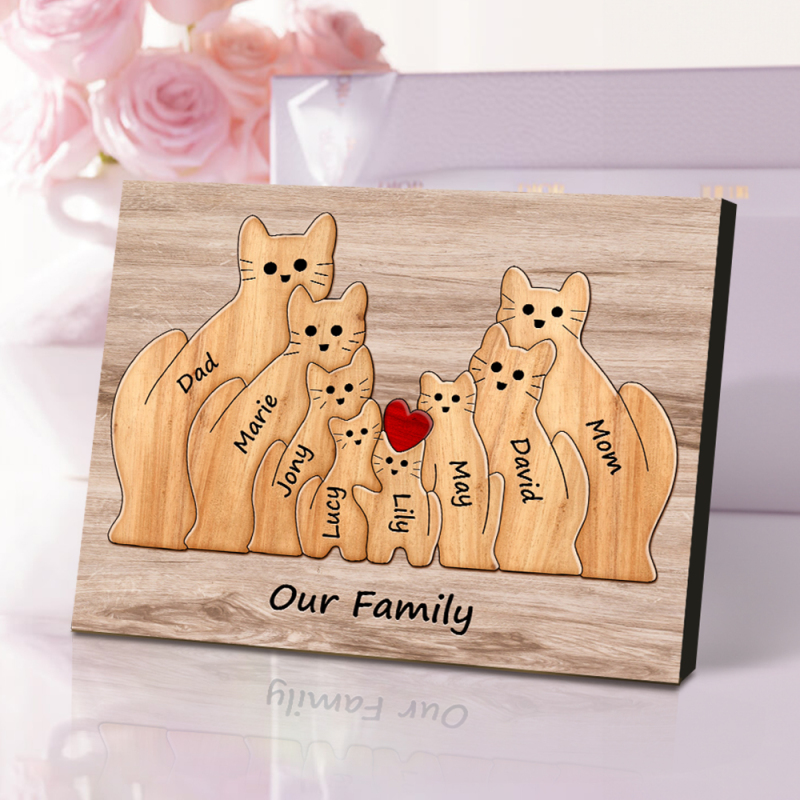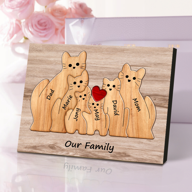 Personalisiertes Tierpuzzle Familie Katze, Personalisiertes Druckgeschenk Für Mama, Oma