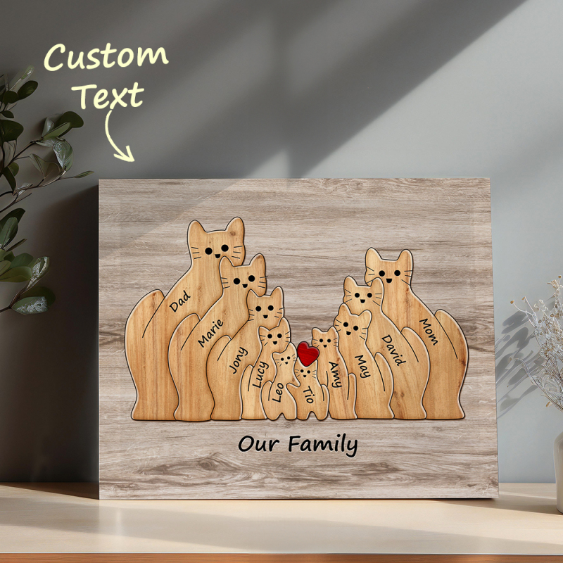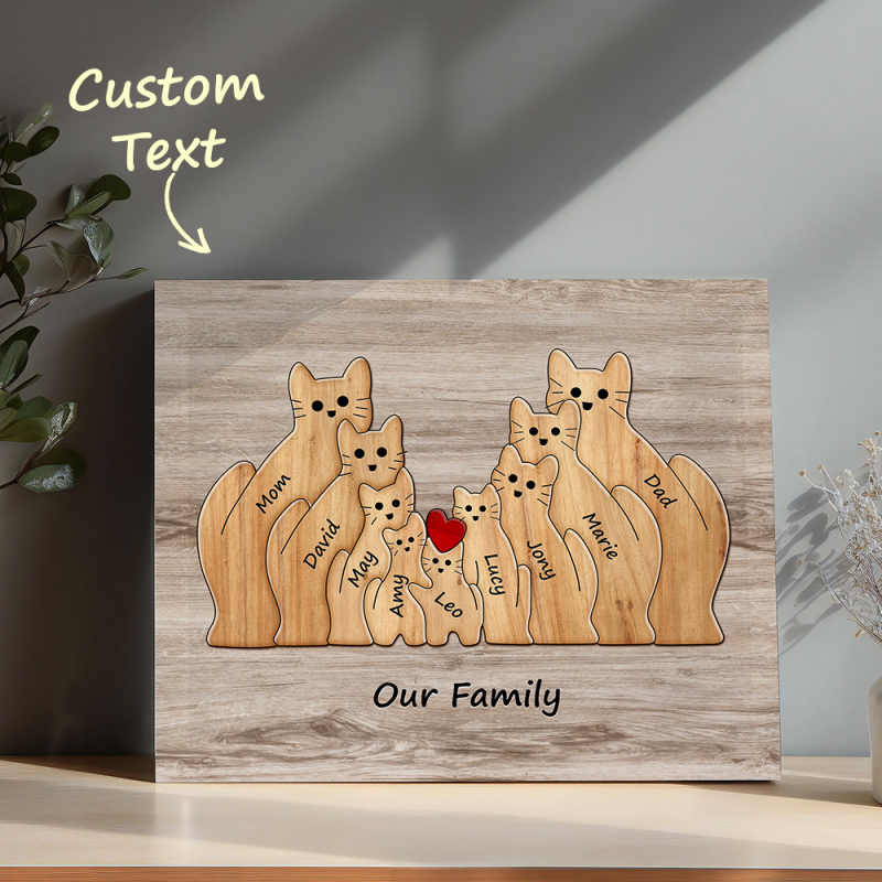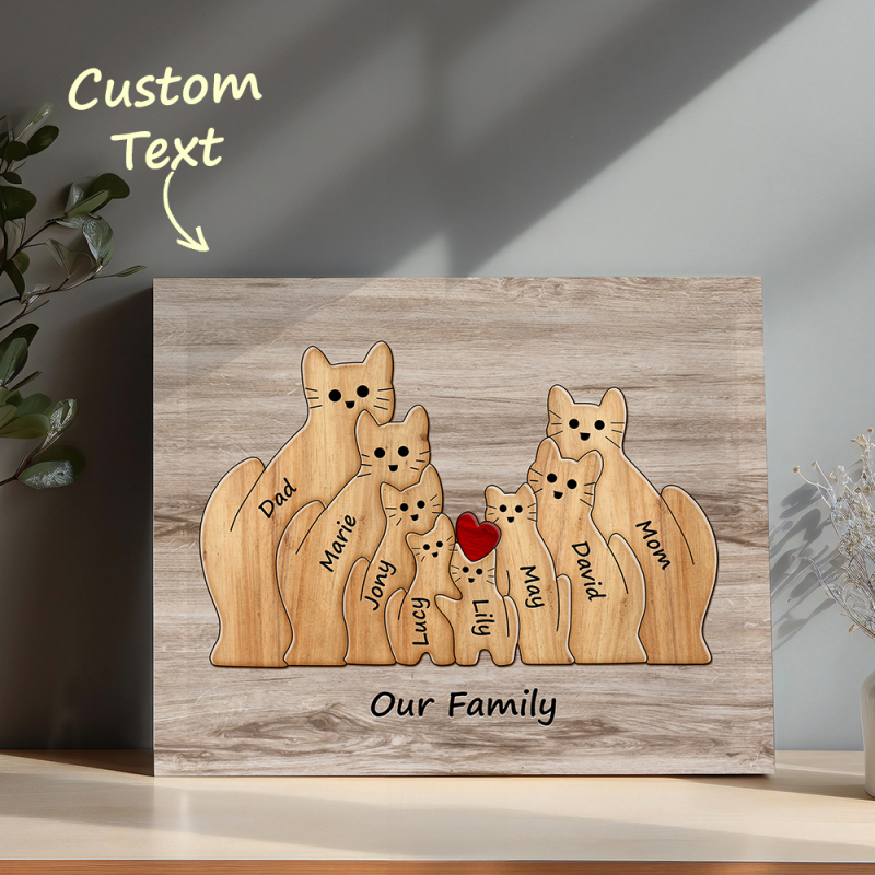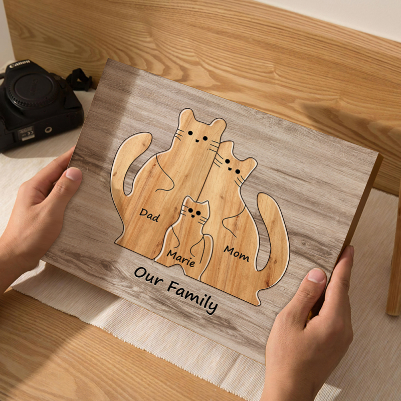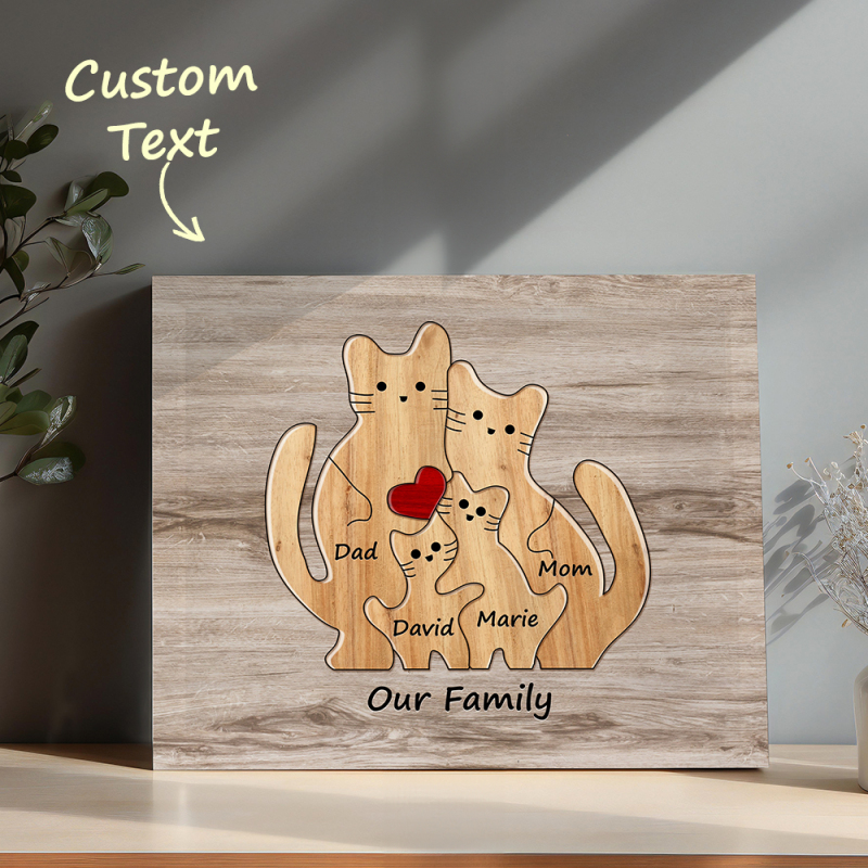 Personalisiertes Tierpuzzle Familie Katze, Personalisiertes Druckgeschenk Für Mama, Oma