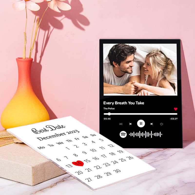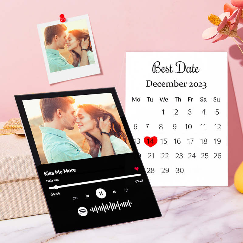 Benutzerdefinierte Doppelseitige Foto-kalenderplakette. Benutzerdefinierte Spotify-glasplakette