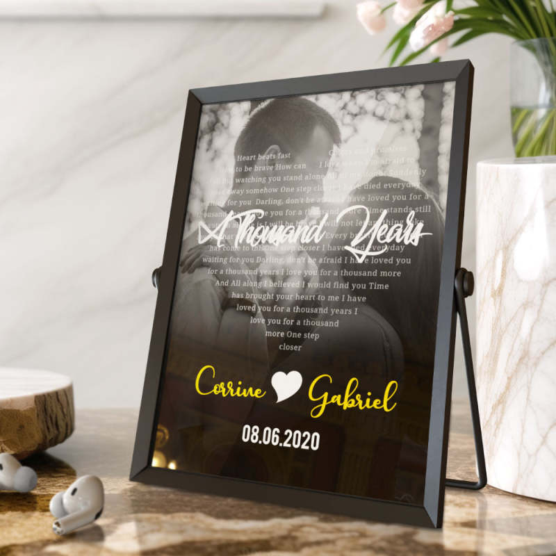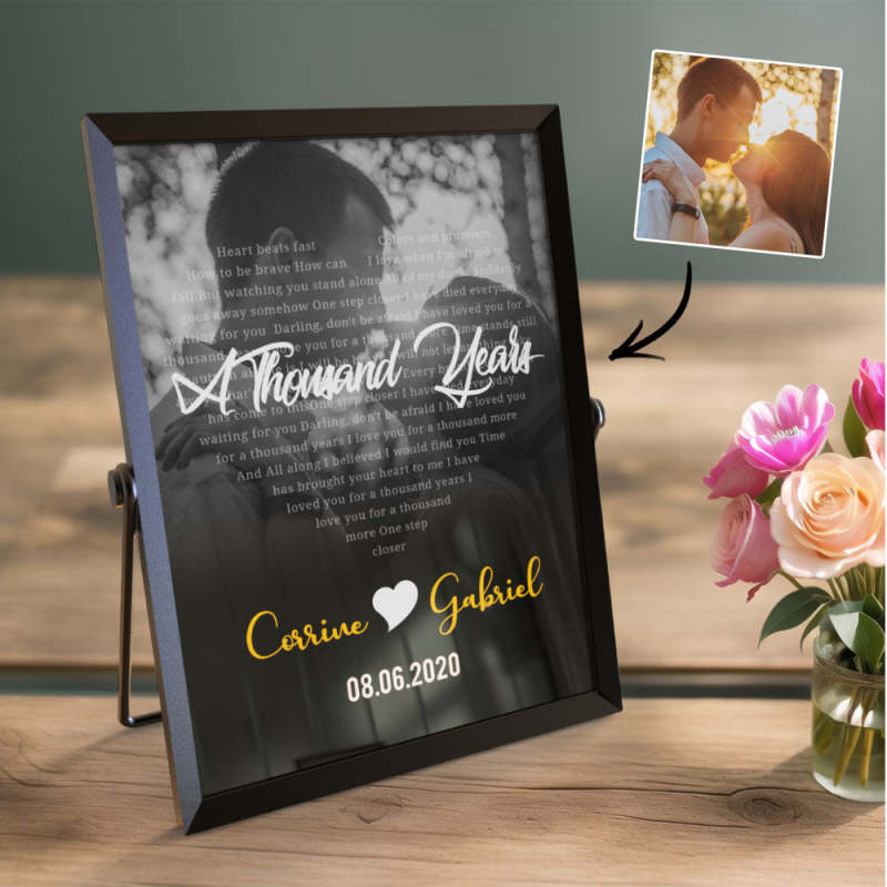 Personalisierter Desktop-fotorahmen Mit Liedtext, Individuelles Schwarz/gold-dekorationsgeschenk