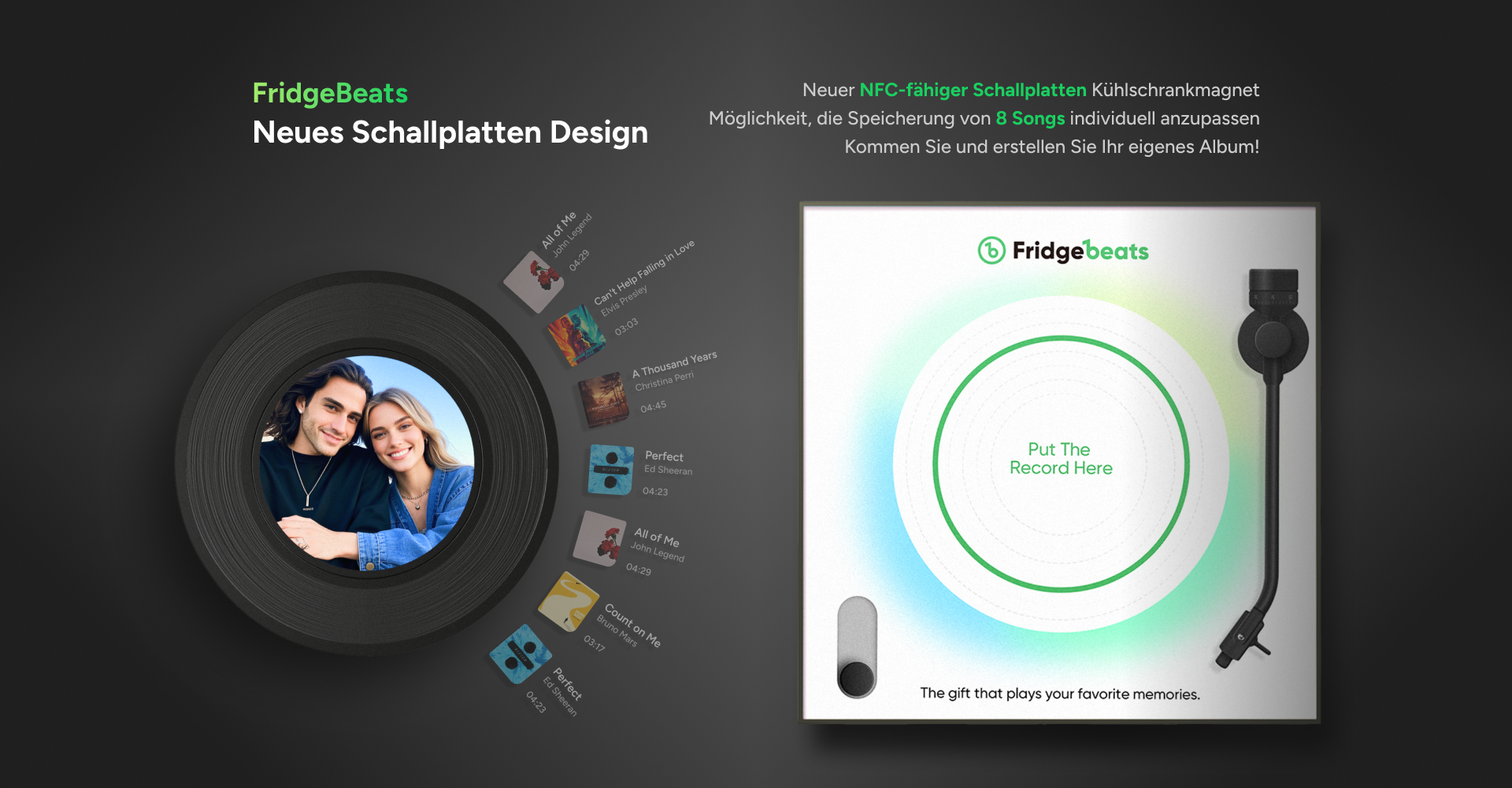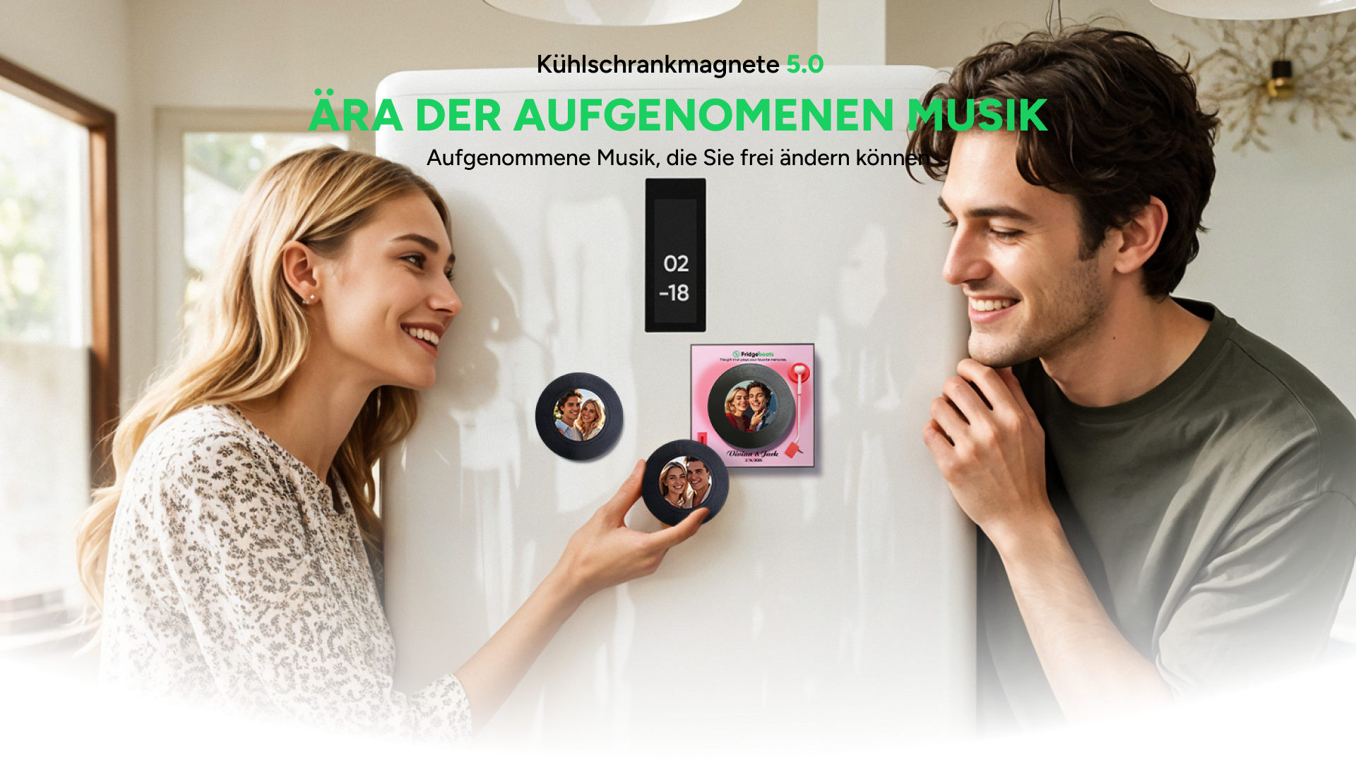 Neuer 5.0-Upgrade-Kühlschrankmagnet mit Musik und Foto, personalisierter Kühlschrankmagnet mit Vintage-Schallplatte, Geschenk zum Valentinstag