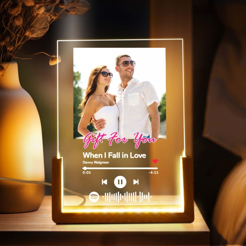 Geschenk Für Sie, Personalisierte Foto-song-plakette Aus Acryl, Individuelle Spotify-plakette, Nachtlichtlampe Mit Spotify-code