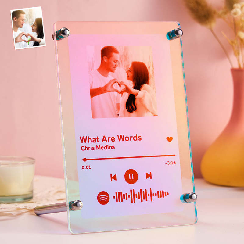 Scanbares Spotify-code-foto, Transparenter Farbverlaufsrahmen, Personalisierte Laser-bunte Acryl-plakette, Valentinstagsgeschenke